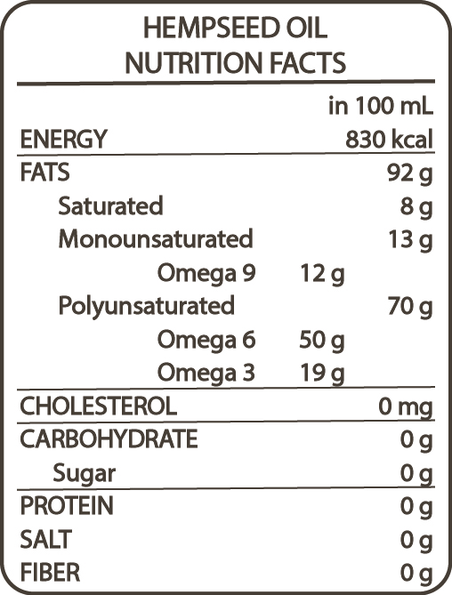 Obtained by the cold pressure of Cannabis Sativa seeds from organic agriculture.